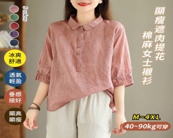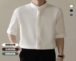 NT$1580遮肉顯瘦七分袖提花襯衫,輕盈布料與精緻提花工藝完美結合,修飾身形,無論通勤或休閒,皆顯優雅風采詳情 - 冰絲中袖襯衫NT$998