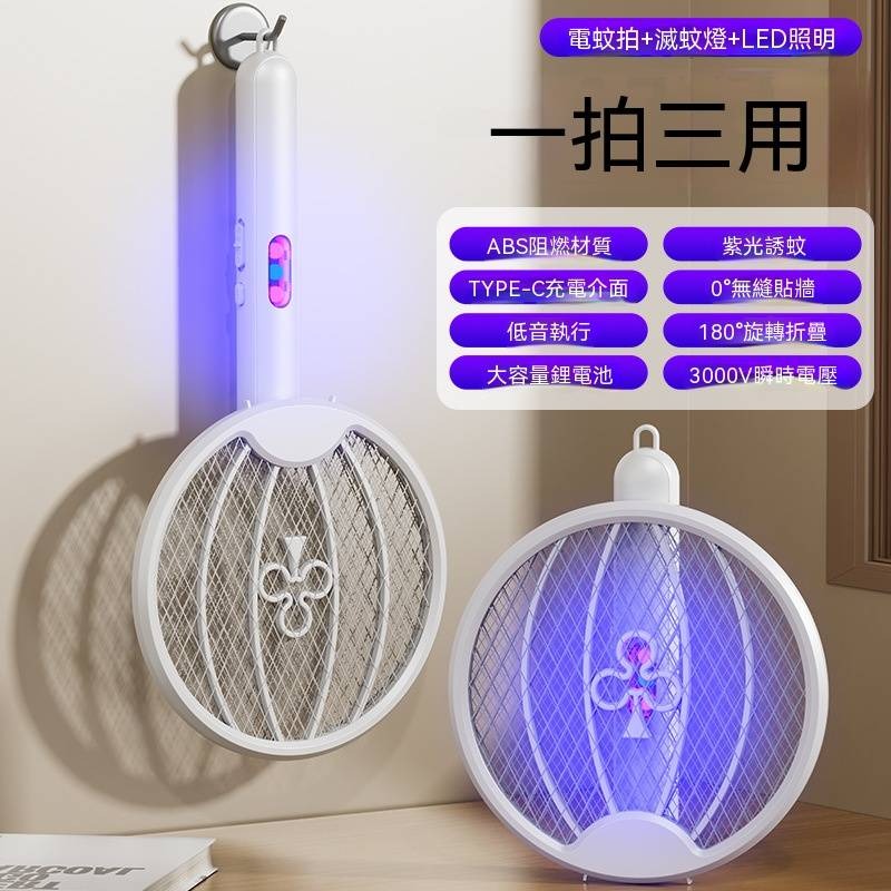 三合一折疊充電款電蚊拍 紫光燈誘蚊滅蚊燈 驅蚊拍蒼蠅神器