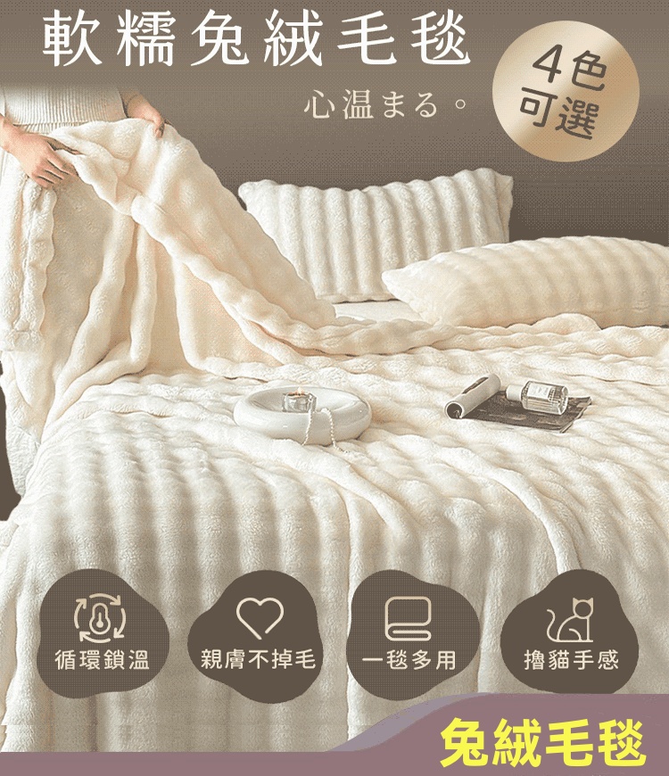[1]【兔絨毛毯1入組】僅需=NT$1050 免運!
