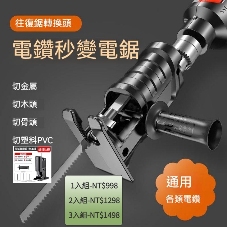 [1]【電鑽變電鋸轉換頭】額外配送鋸條3根 1入組-NT$998(免運)