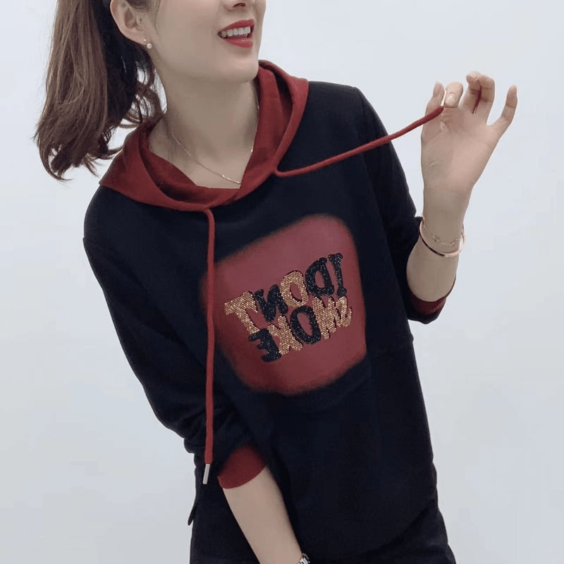限時搶購 【撞色字母連帽衛衣】洋氣連帽衛衣 時尚字母印花 寬鬆減龄 休閒新款衛衣