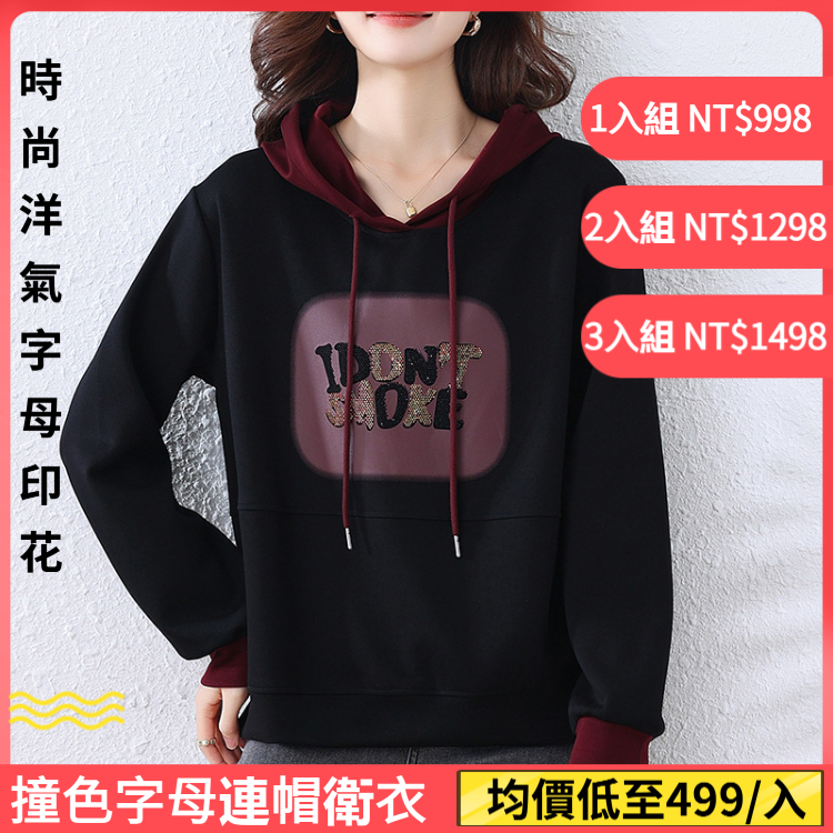 [1] 撞色字母連帽衛衣【時尚減齡】1入組 NT$998(免運)