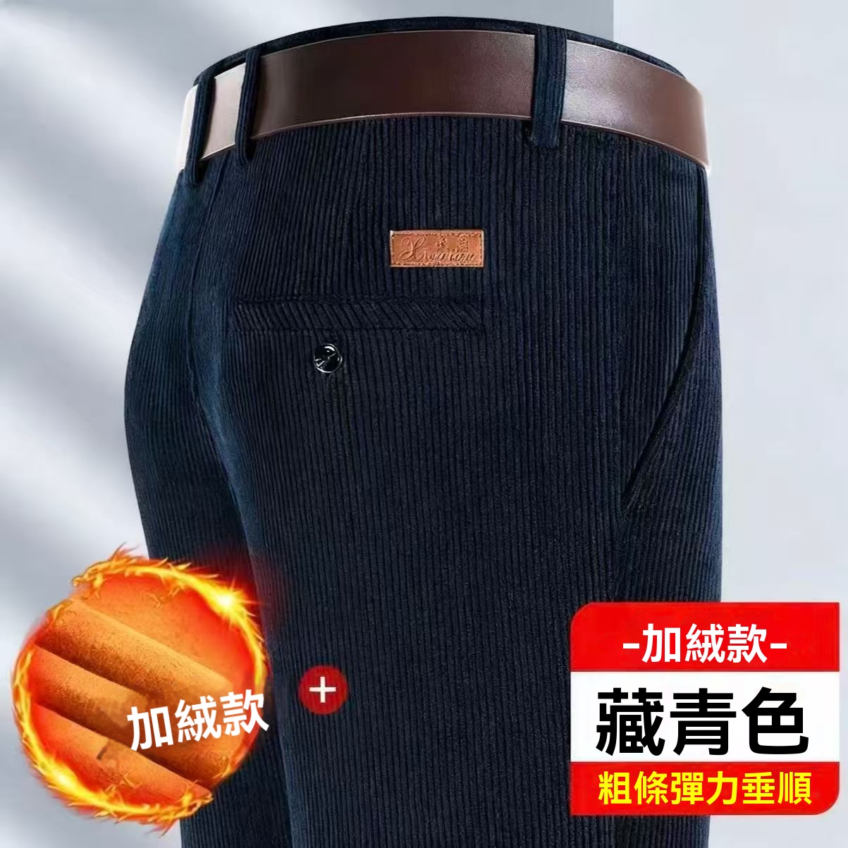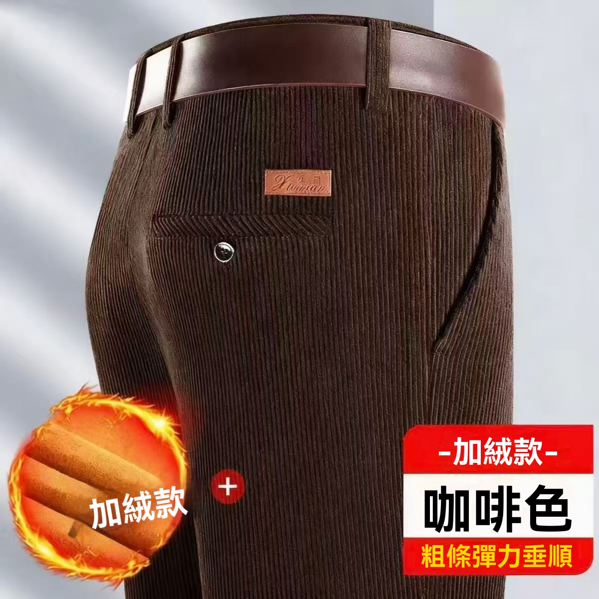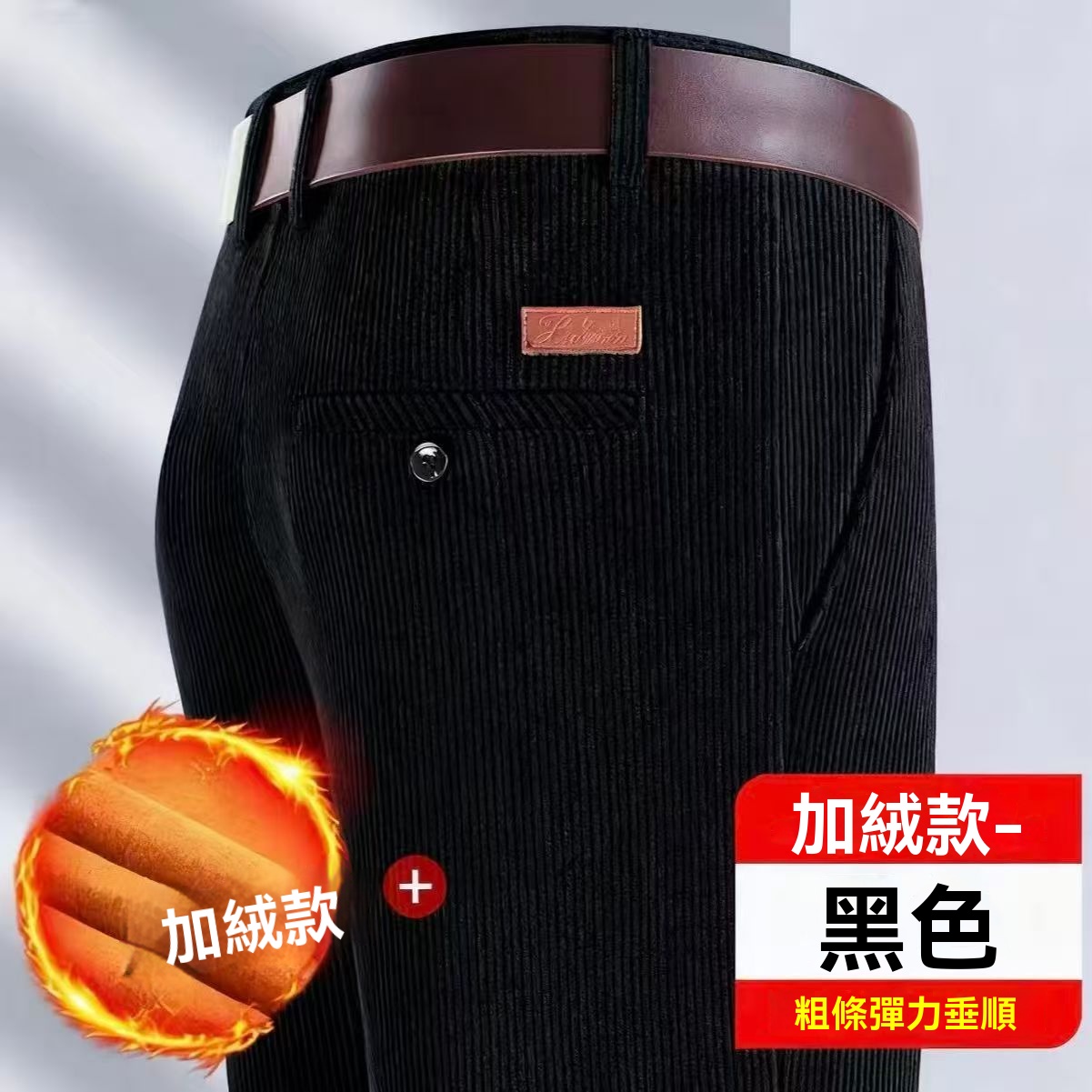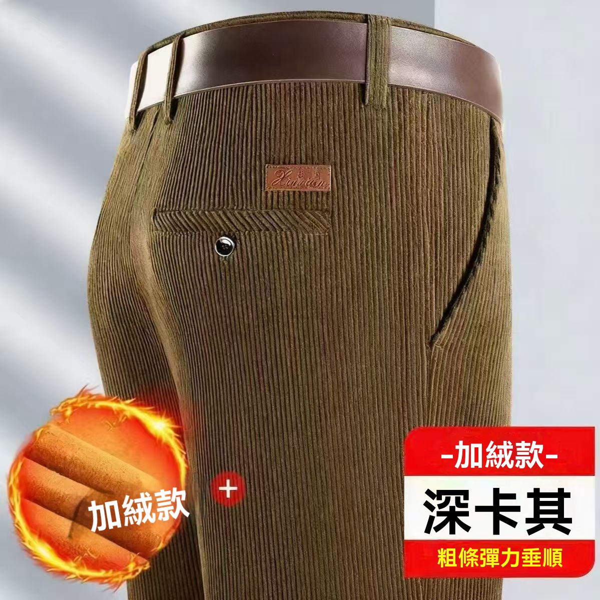 燈芯絨男褲 秋冬加絨厚款 直筒休閒褲 寬松免燙 中老年男士 爸爸裝褲子