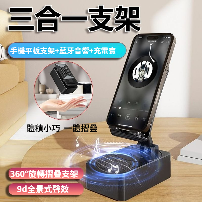 【四合一藍牙充電支架】藍牙音響+充電寶+支架三合一