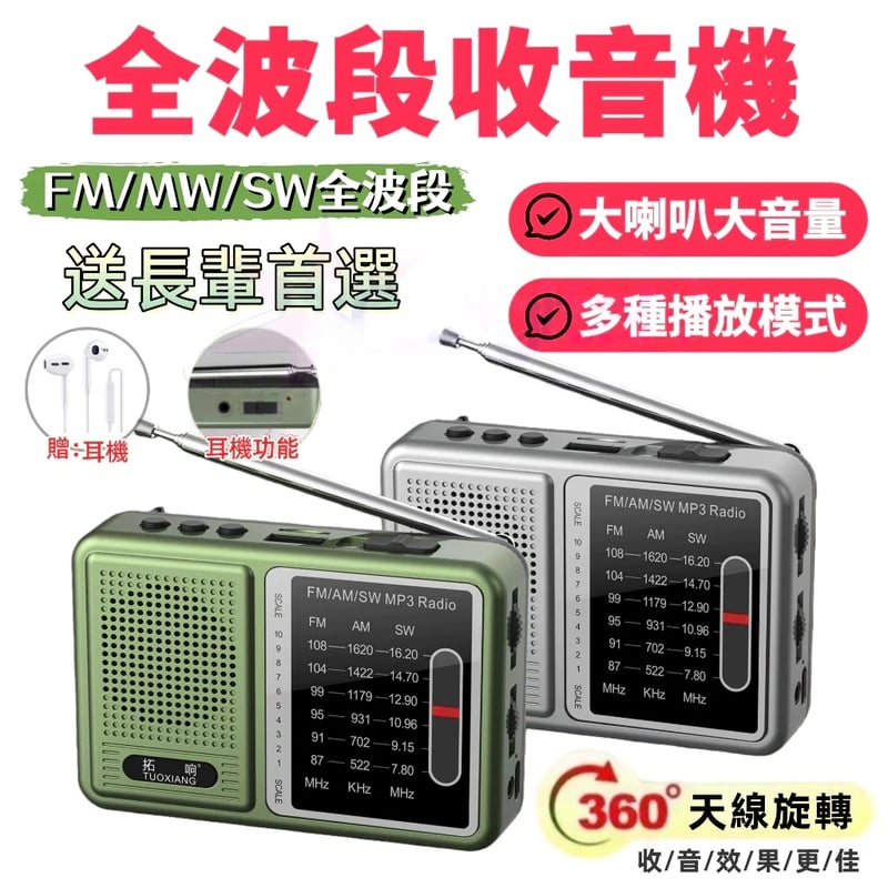 新款拓響 迷你全波段收音機 便攜式老年人全波段收音機 操作簡單可充電 推薦大音量